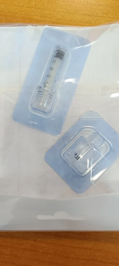 Az injekció előkészítése körülbelül egy perccel megnyújtja az injekció beadás előkészületét, mivel az oltóanyagot át kell szívni a speciális fecskendőbe. A felszíváshoz használt fecskendőt és összeköttetőt a gyógyszertárban önöknek kell megvásárolniuk. Csak a rendelővel szemközt található Etele Gyógyszertárban ( Etele út 69.) tudják megvásárolni a tartozékot 4195 ft-os darabáron. Minden oltás beadásásához egy külön tartozékot szükséges megvásárolni, mivel ezek egyszer használhatóak. Az alábbi képen a két tartozék látható gyógyszertári csomagolásban. Az első jelentkezők az ingyenes tesztkészletből próbálhatják ki az új technikát.